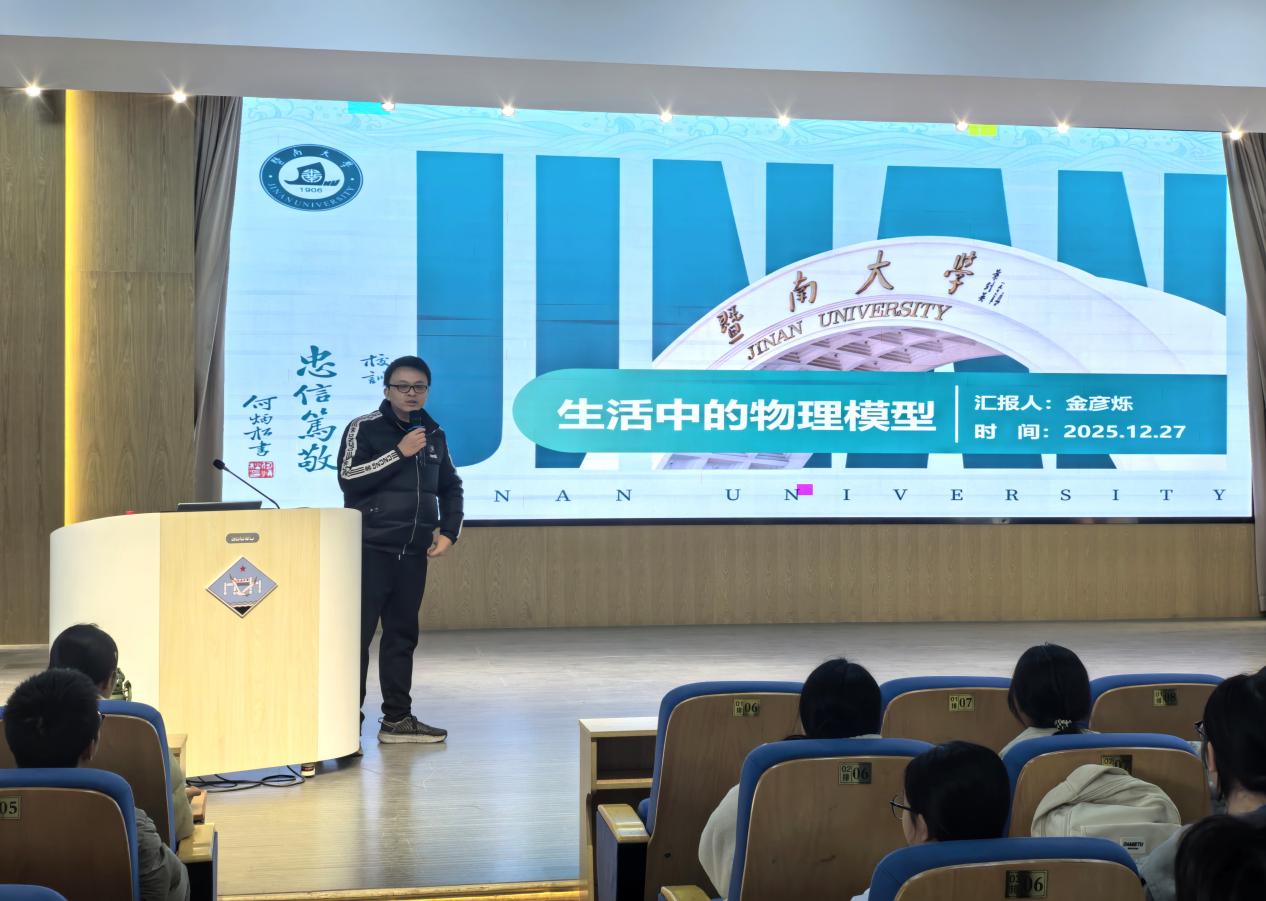 金彦烁副教授带来了题为《生活中的物理模型》的趣味讲座,巧妙连接物理原理与日常现象,进一步激发了同学们探索物理世界的兴趣,并热情鼓励大家未来报考暨南大学,延续这份科学热情。他向同学们全面展示了暨南大学深厚的历史底蕴、多元化的人才培养模式、特色专业与创新机制,以及丰富多彩的校园文化与优美环境。